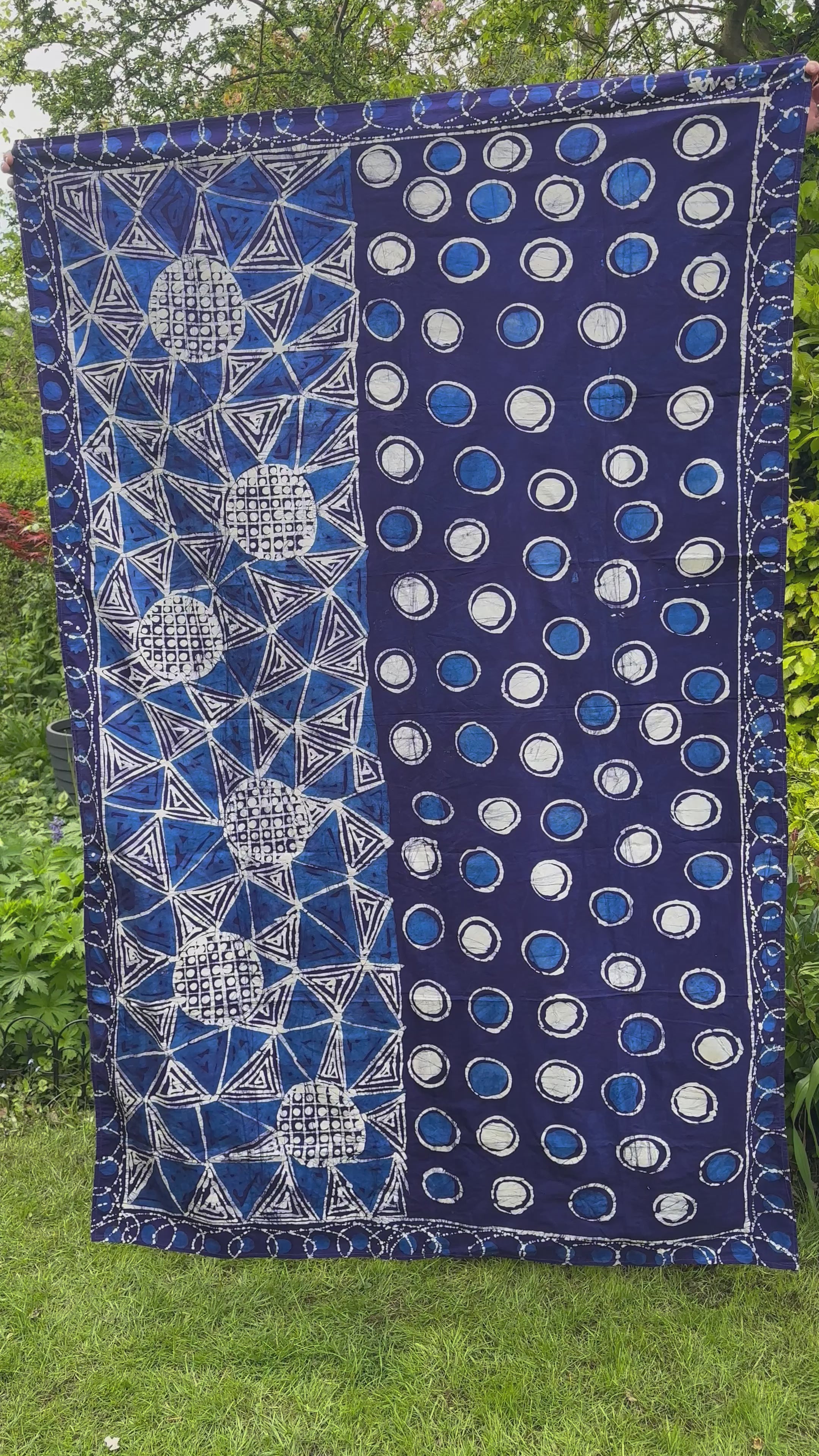 Handmade in Nigeria, this Batik Tablecloth / Blanket is a unique work of art. Made from 100% cotton with a free hand design, each piece is one of a kind with a vibrant and unique pattern. Perfect for your table or as a beach blanket, picnic blanket, or throw.