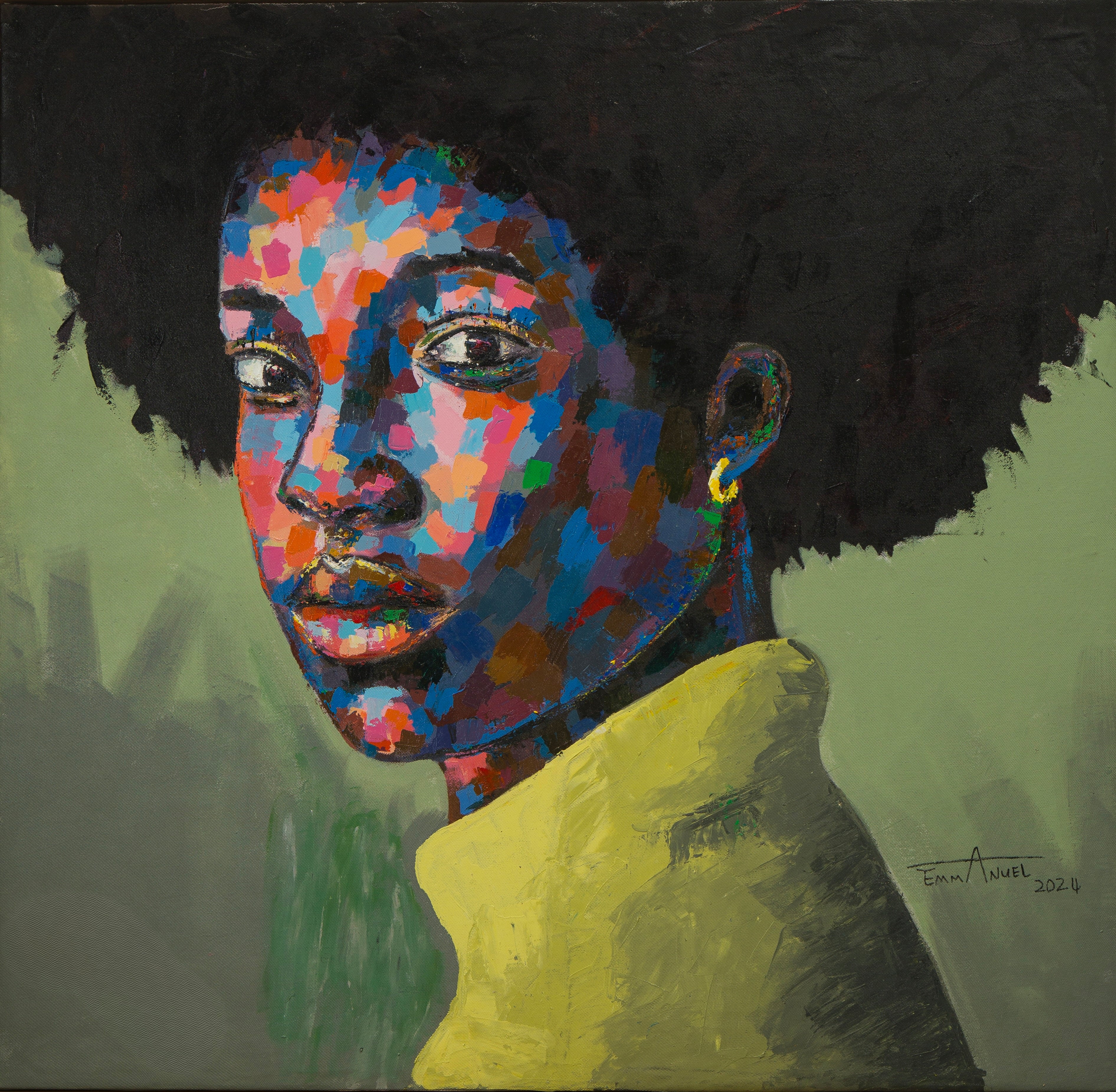 Ghanaian artist Kwesi Koo Nyarkoh explores identity through body paint within african tribes. His stunning portraits are detailed, piercing and emotive. A combination of techniques, colour composition and subject matter arrests you the minute you set eyes on one of his pieces. The scale of his work drives home the connection you feel in the presence of the eyes that penetrate and takes the breath away.